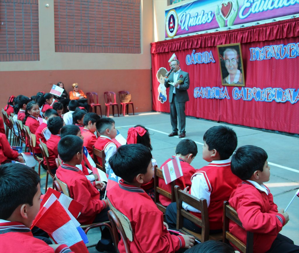 El Cónsul Iglesias se dirigió a niños y niñas presentes, agradeciendo el afecto por nuestra poetisa, y resaltando la relevancia de su legado, su especial conexión con el Perú y el valor de su figura como mujer chilena, educadora rural y destacada escritora y poetisa latinoamericana.