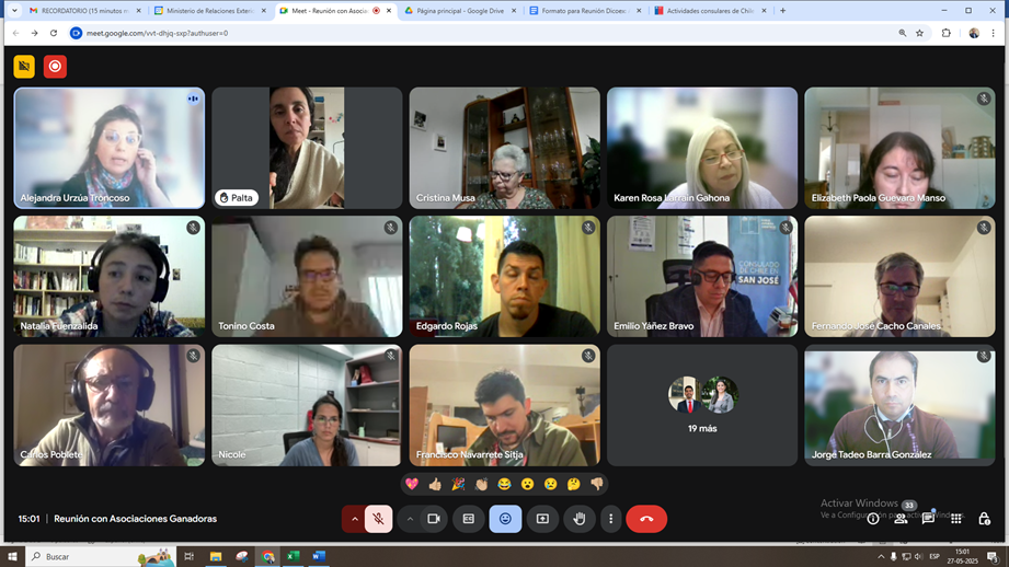 Con la participación de representantes de las 12 agrupaciones de chilenos y chilenas que se adjudicaron recursos del “Fondo para el Fomento de la Vinculación, Asociatividad y Participación de las Comunidades de Chilenos en el Exterior”, el pasado martes 27 de mayo se realizó un encuentro virtual para resolver dudas e inquietudes para la ejecución de los proyectos y rendición de cuentas.