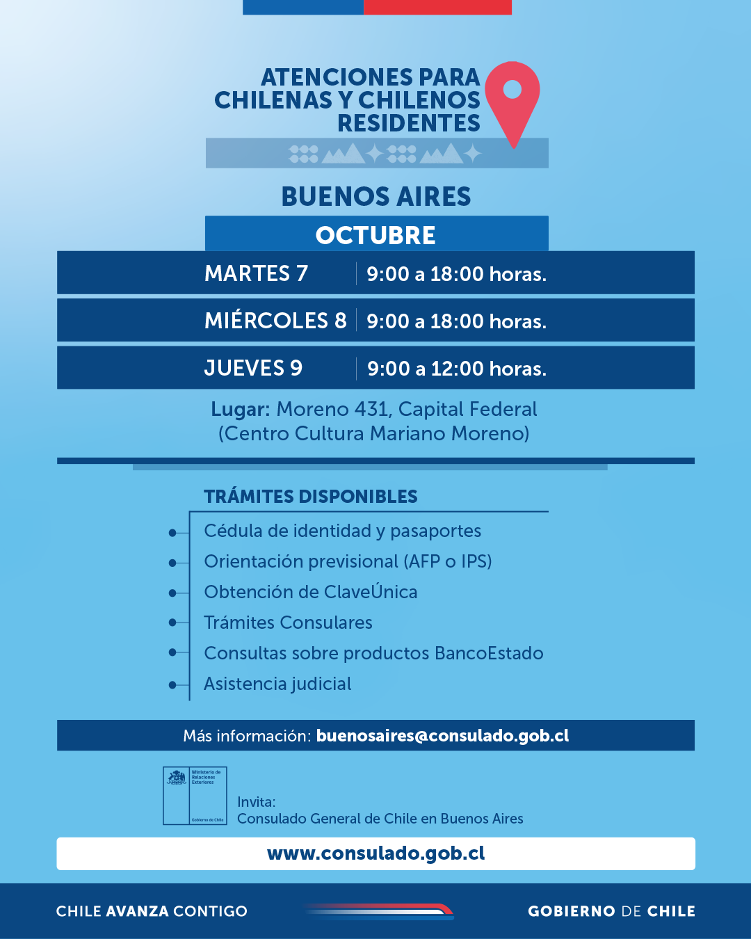 Para más información, puedes escribir al correo electrónico: buenosaires@consulado.gob.cl