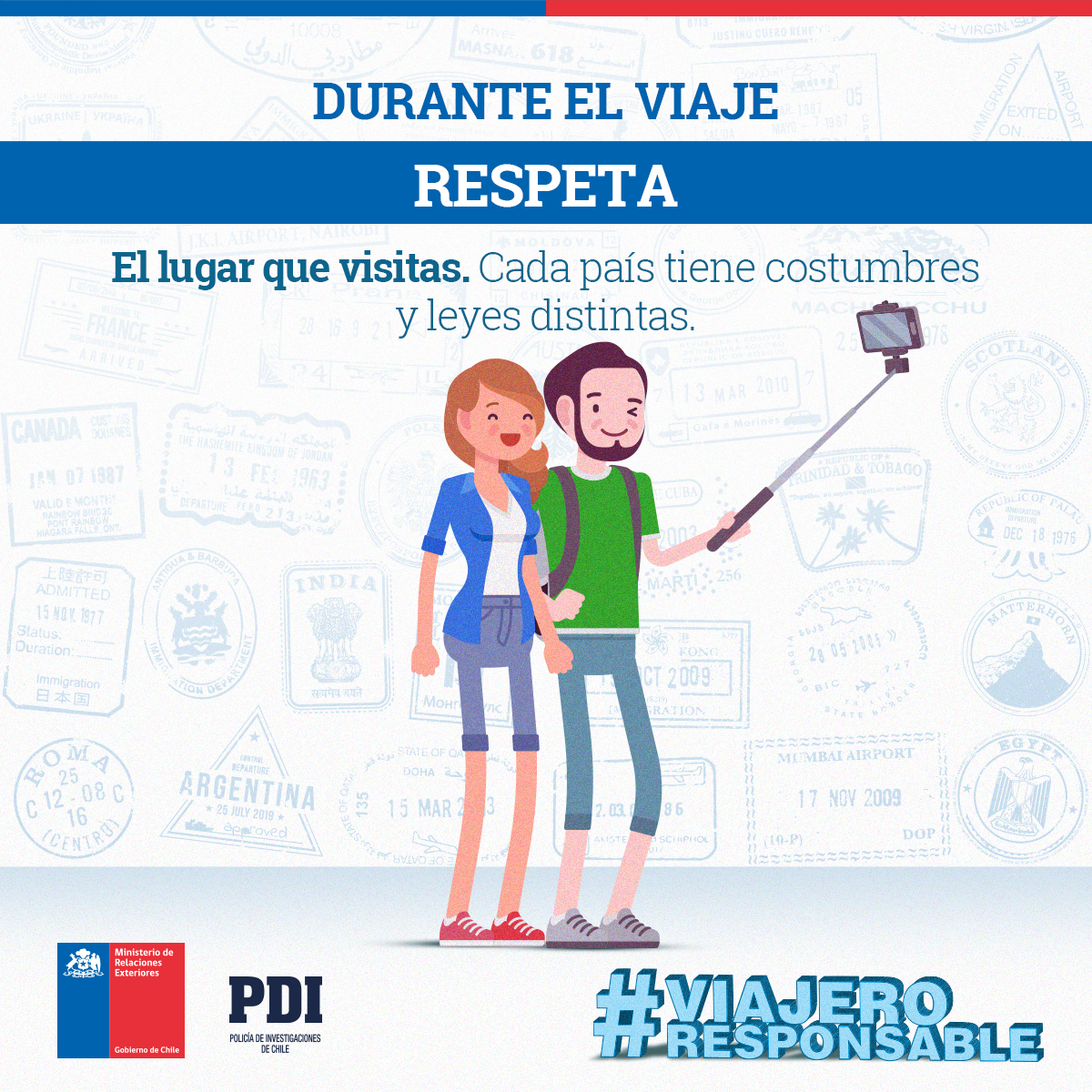 Eres la imagen de Chile en el exterior. Tu responsabilidad te permitirá un viaje seguro.